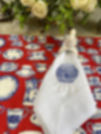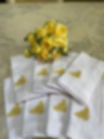 Jogo americano hortênsias rosa, guardanapo bordado e porta guardanapo de cerâmica